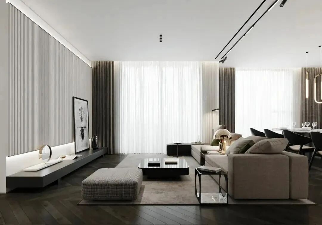 其实在近年来全屋装用木地板备受人们喜爱,除了剧中使用的原木色之外,生活中常见的灰色木地板也很适合用在小户型设计当中,尤其是以灰色为主的轻奢风、北欧风空间,加入灰色的木地板更好看。