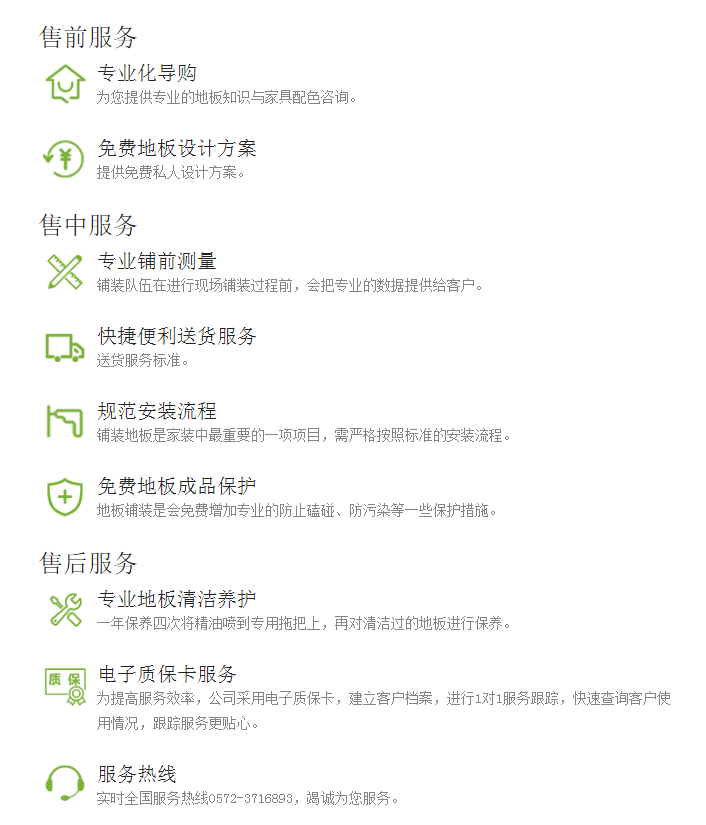 其实荣臣地板也做到了有人情味的“王牌服务”,不断深入了解消费者的需求,从原材料采集、产品设计、生产、终端建设和销售服务等方面一系列服务,保障消费者在购买荣臣地板的时候能够“购无忧”、“用无忧”、“享无忧”。
